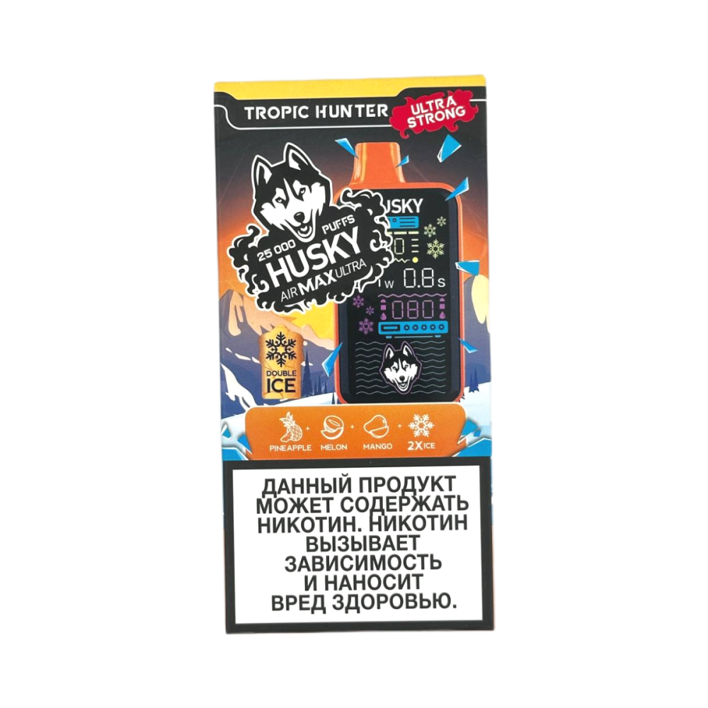 - Купить электронную сигарету HUSKY AIRMAX ULTRA 25000 Ананас дыня манго и лед в магазине snusmsk Электронная сигарета HUSKY AIRMAX ULTRA 25000 с вкусом ананас, дыня, манго и лед – это превосходное устройство для тех, кто ценит насыщенные фруктовые ароматы с легким охлаждающим эффектом. Вкус сочетает сладкие и сочные ноты тропических фруктов с освежающей прохладой льда, создавая неповторимое удовольствие при каждом вдохе. Модель HUSKY AIRMAX ULTRA 25000 отличается большой емкостью и запасом до 25000 затяжек, что обеспечивает длительное и комфортное использование без перерывов на дозаправку или зарядку. Устройство обладает эргономичным дизайном, который удобно лежит в руке и легко помещается в карман или сумку. В магазине snusmsk вы можете купить электронную сигарету HUSKY AIRMAX ULTRA 25000 с гарантией качества и оригинальности продукта. Заказ оформляется быстро и удобно на официальном сайте, с возможностью выбора подходящего способа оплаты и доставки. Это устройство подойдет как для опытных пользователей, так и для новичков, желающих попробовать качественную и вкусную электронную сигарету с тропическим вкусом и охлаждающим эффектом. HUSKY AIRMAX ULTRA 25000 – это идеальный выбор для тех, кто ищет надежное и стильное устройство для ежедневного парения.